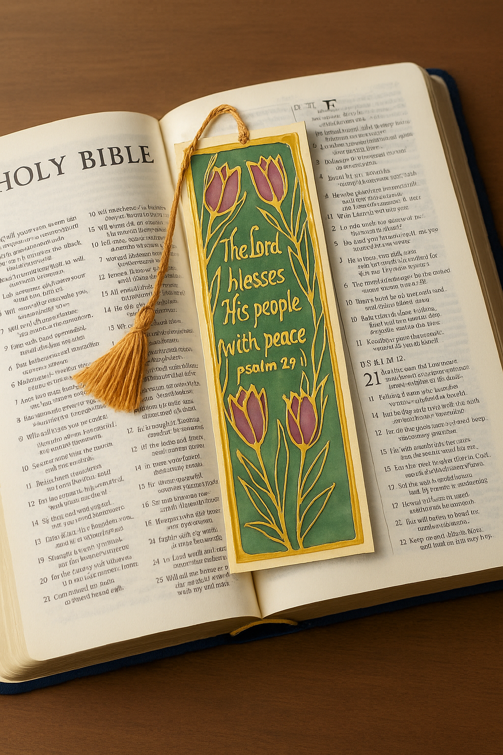 Each scarf is carefully hand-painted, drawing on Christian verses and natural themes.