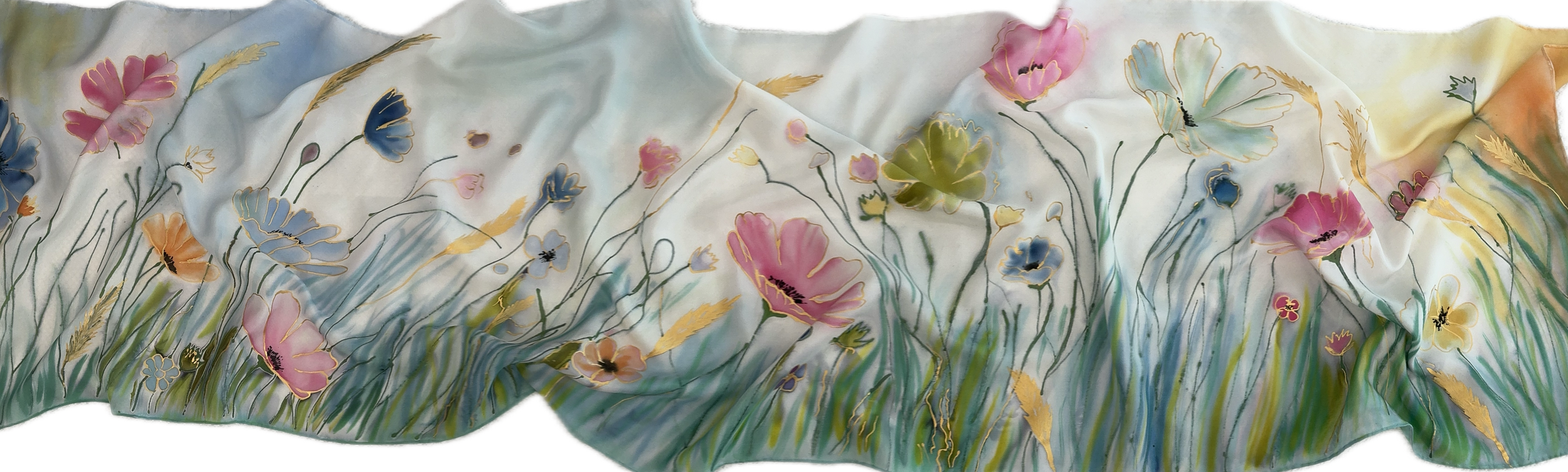 100% of my clients have loved their hand-painted scarves ; whether receiving a finished piece of wearable art or creating their own with the silk painting kit.
