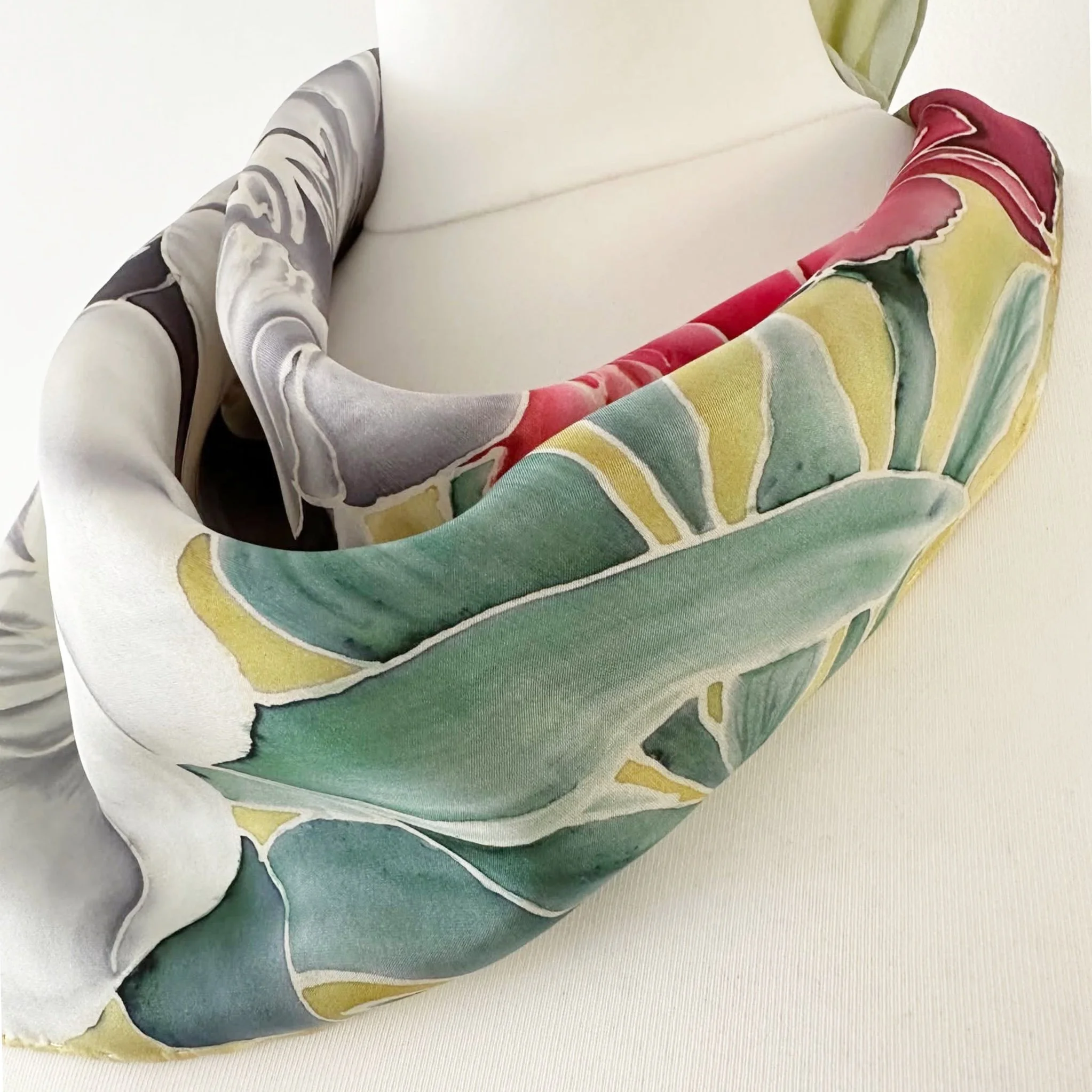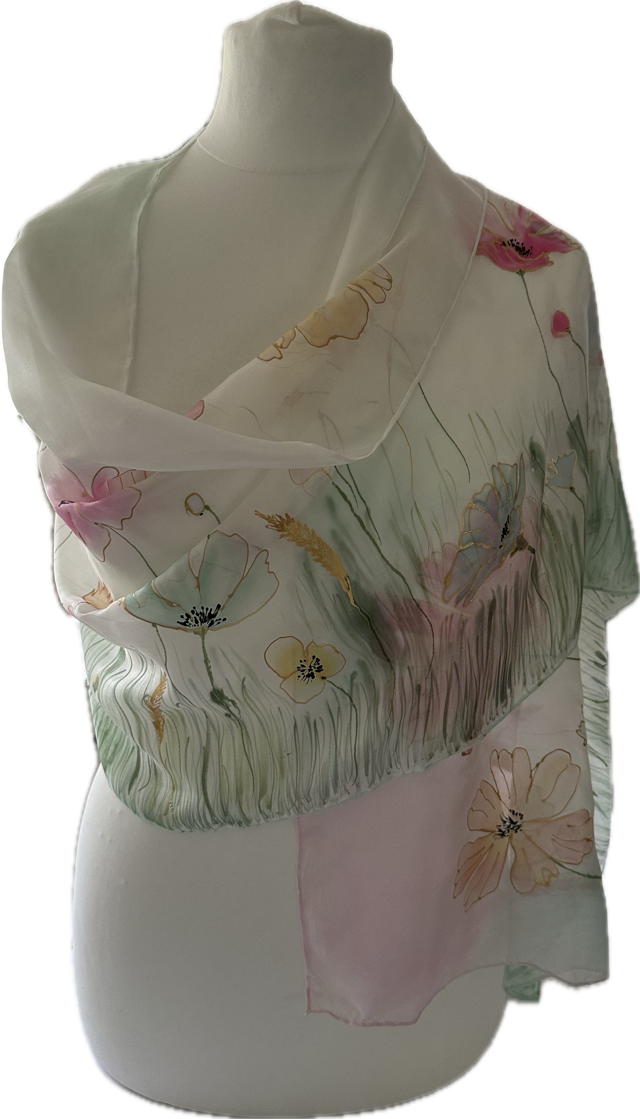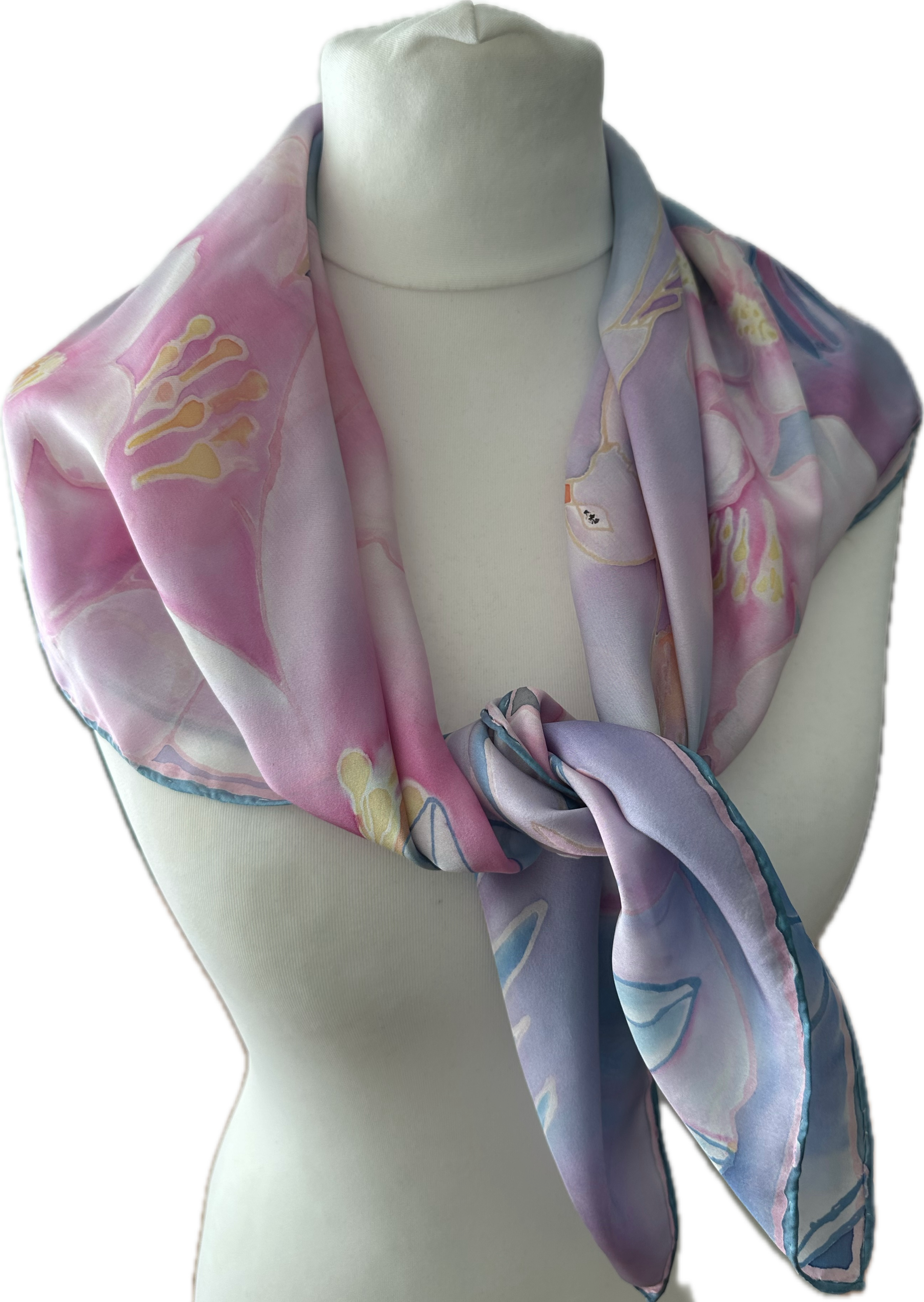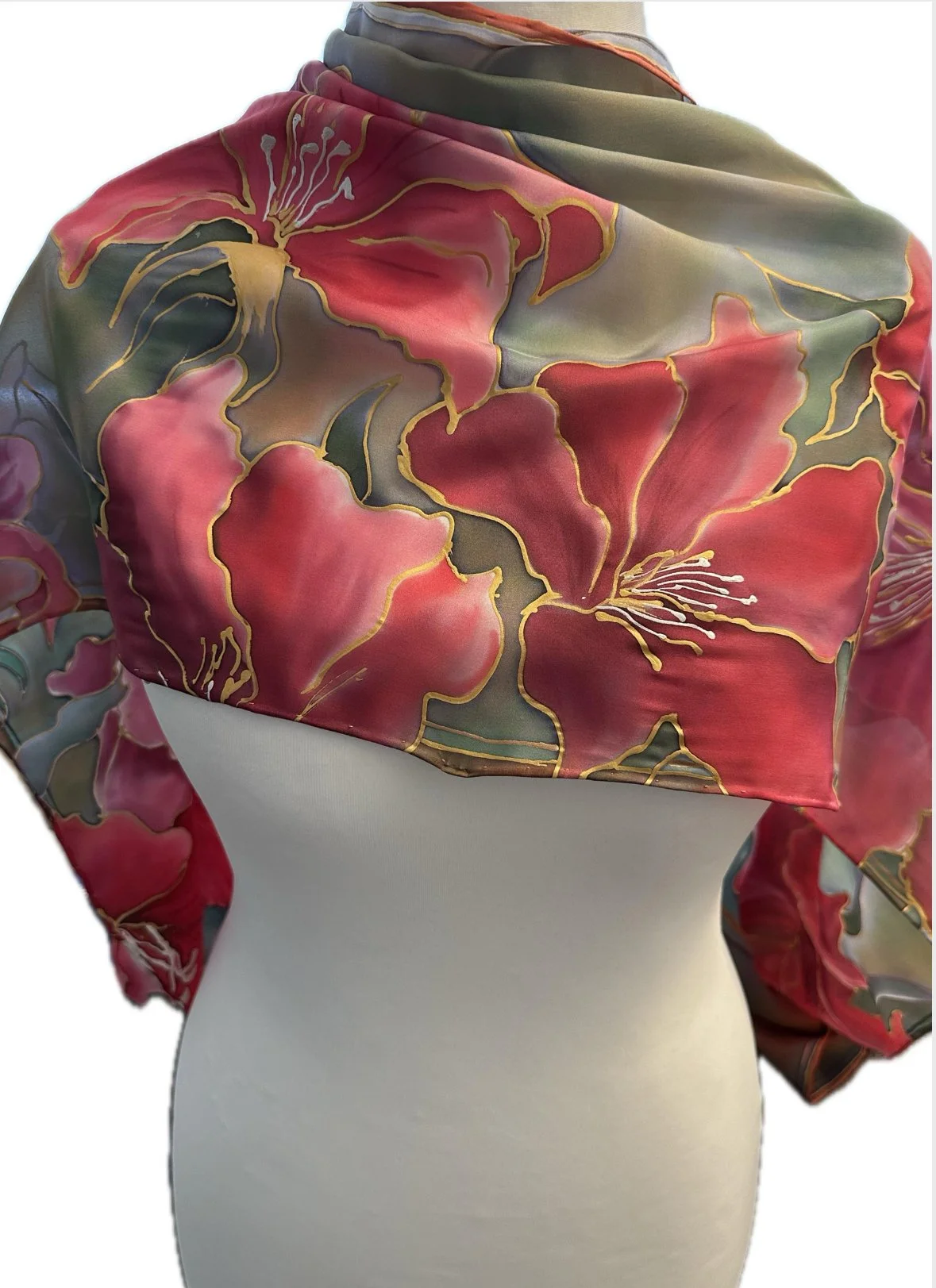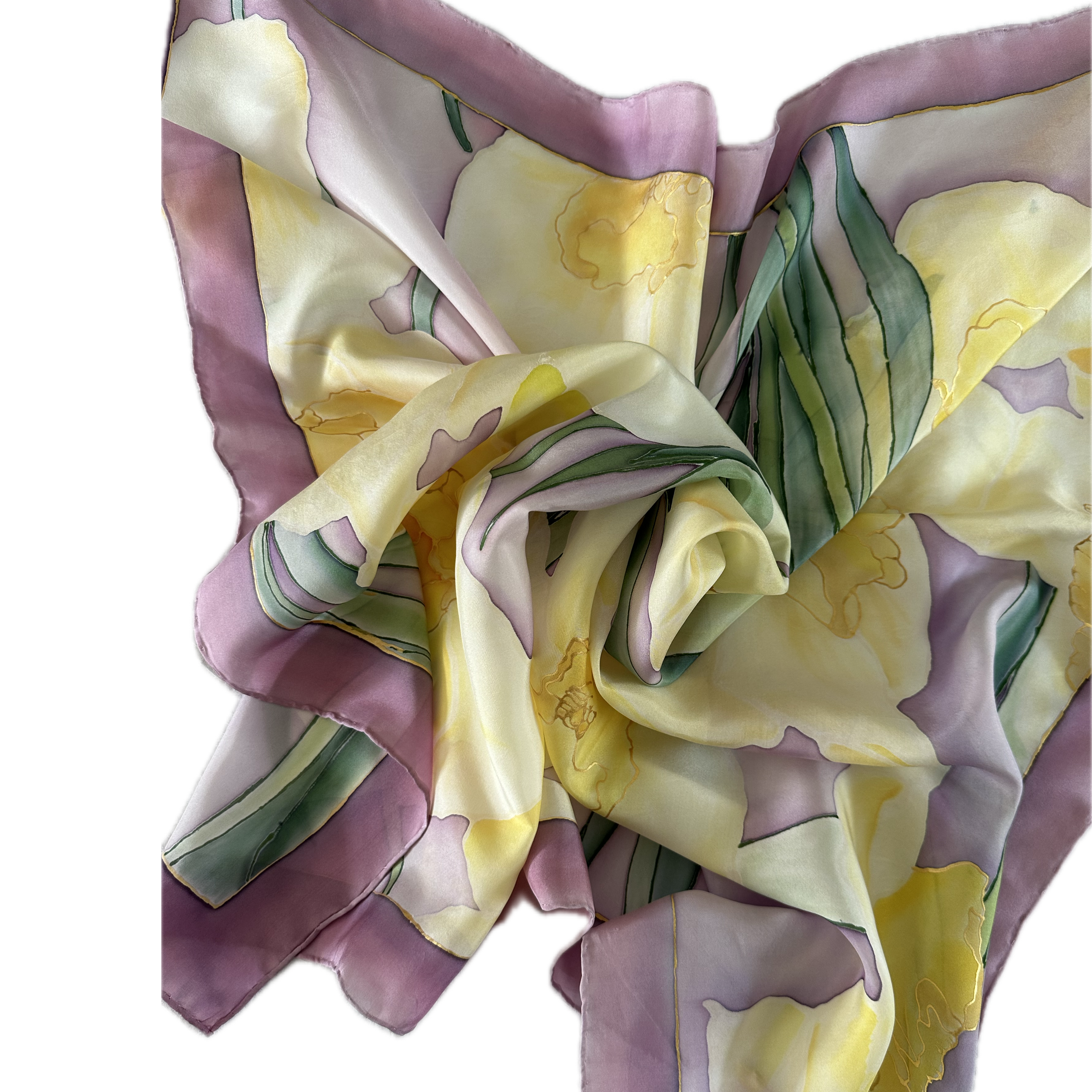 Each silk scarf is carefully hand-painted and made with care, these scarves bring a simple, elegant touch of color and style to any outfit.