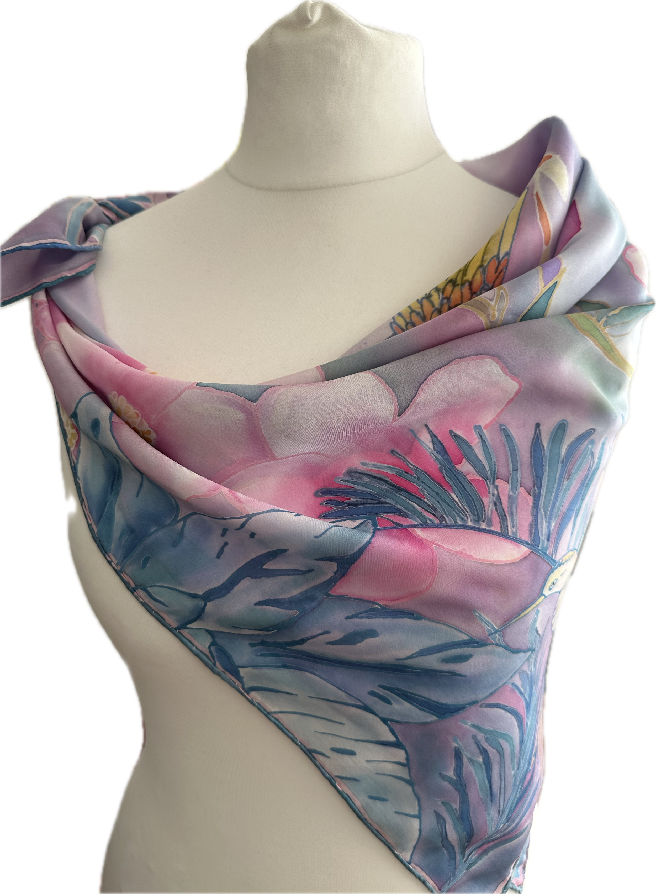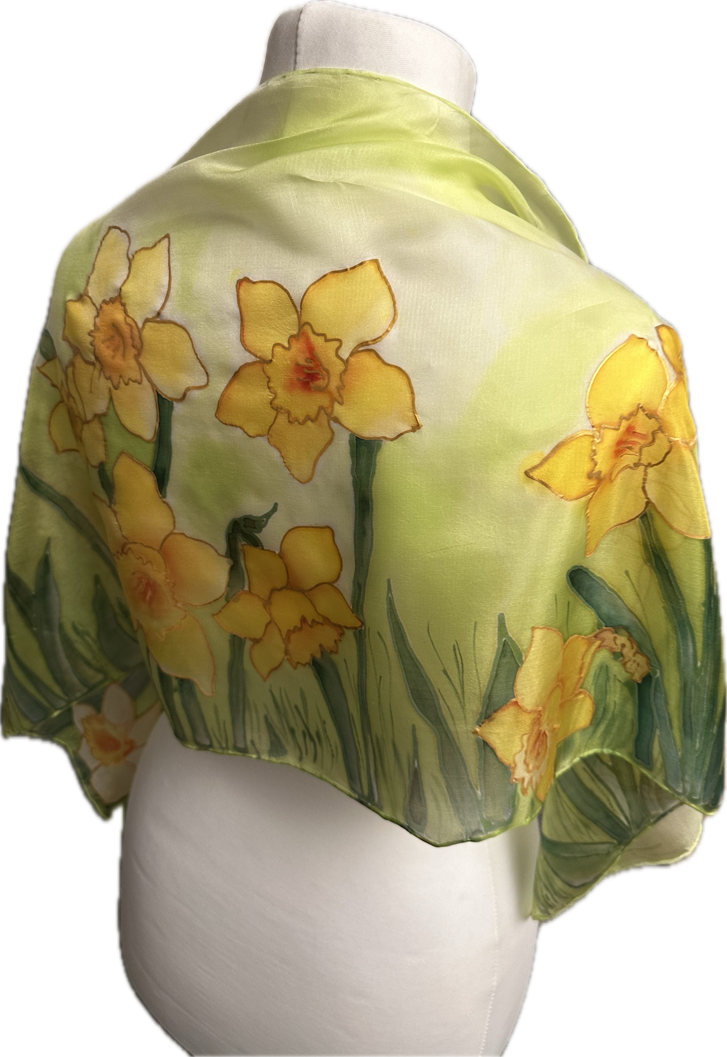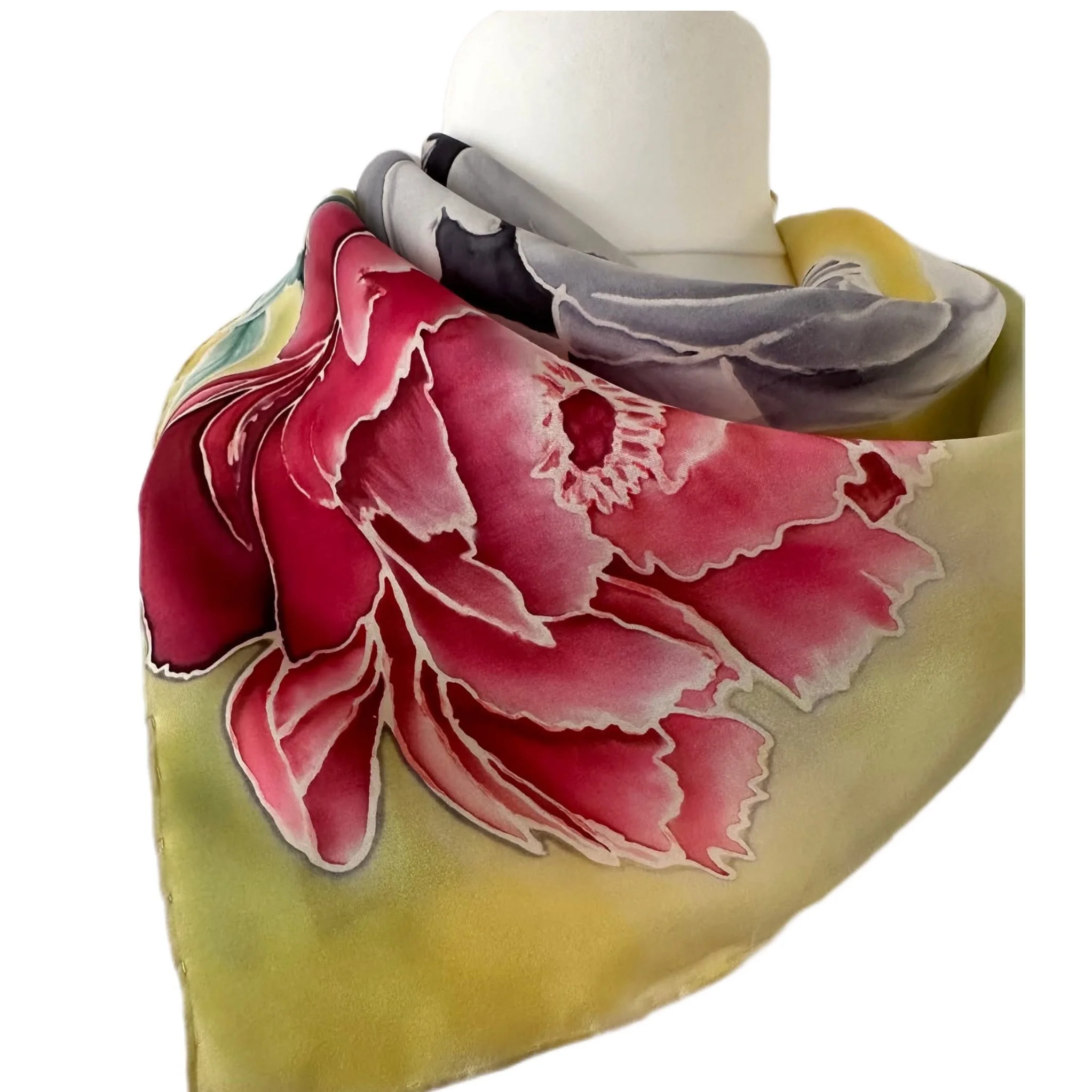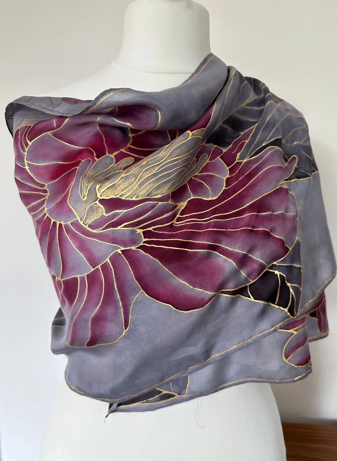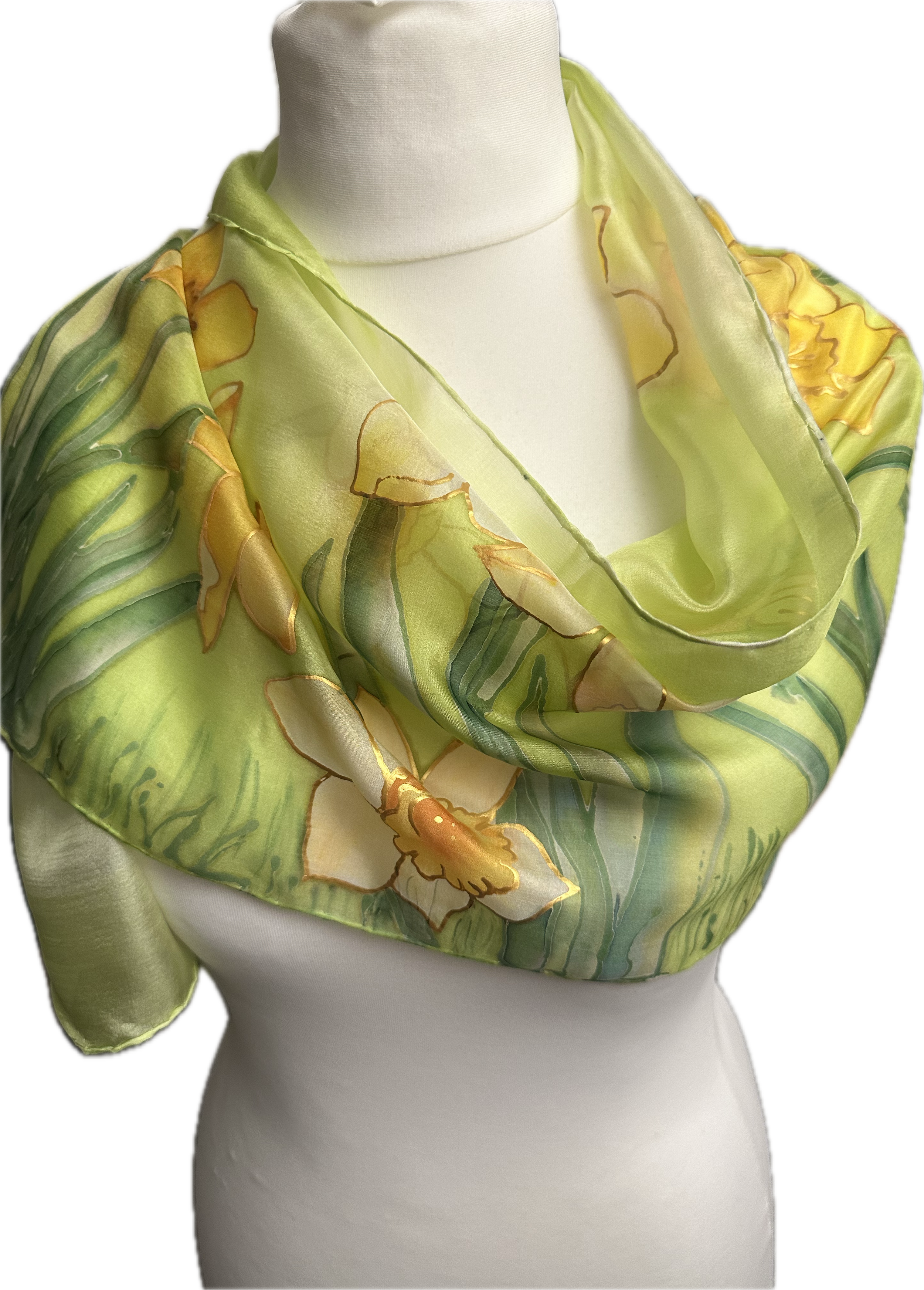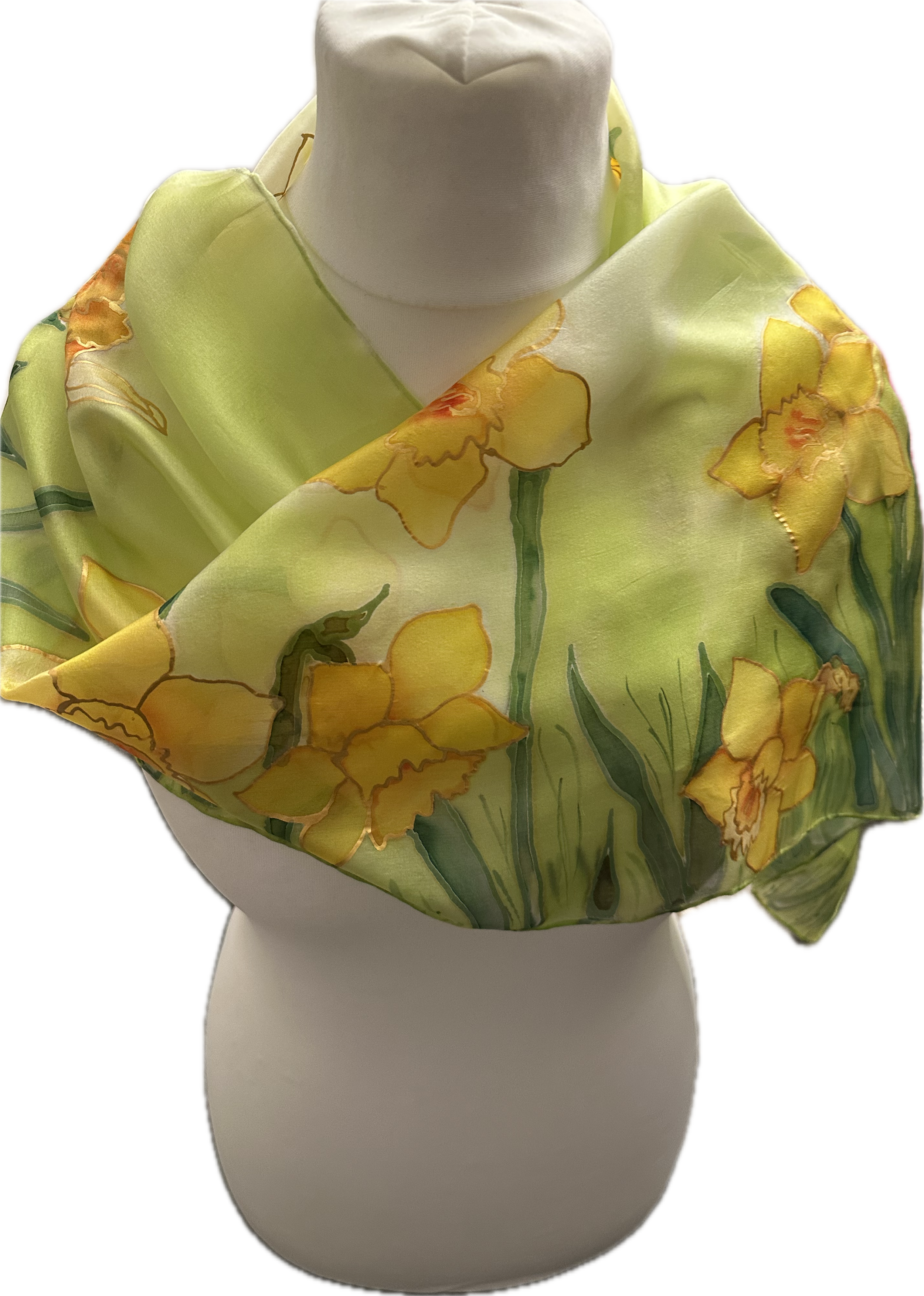 Each silk scarf is carefully hand-painted and made with care, these scarves bring a simple, elegant touch of color and style to any outfit.