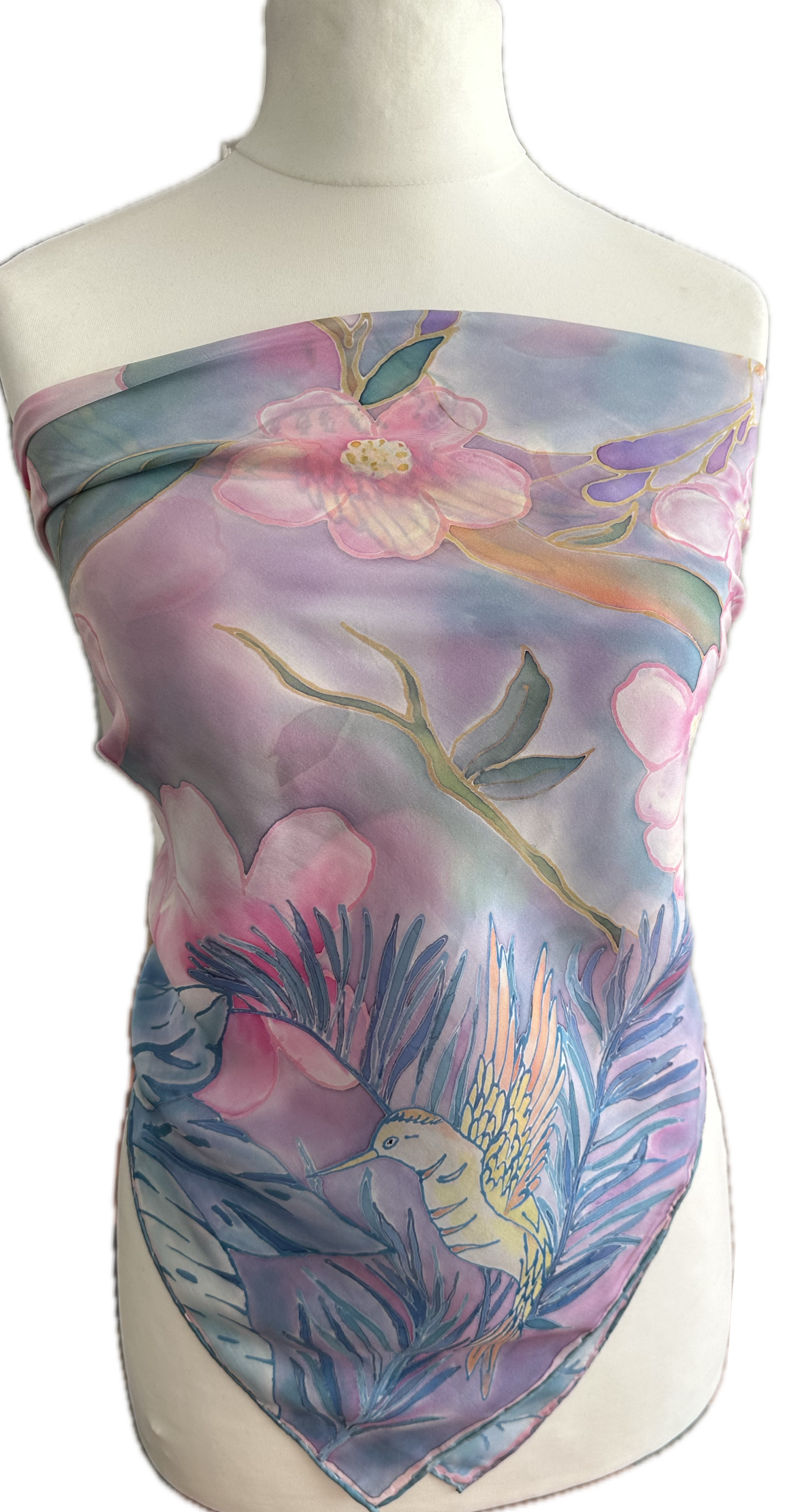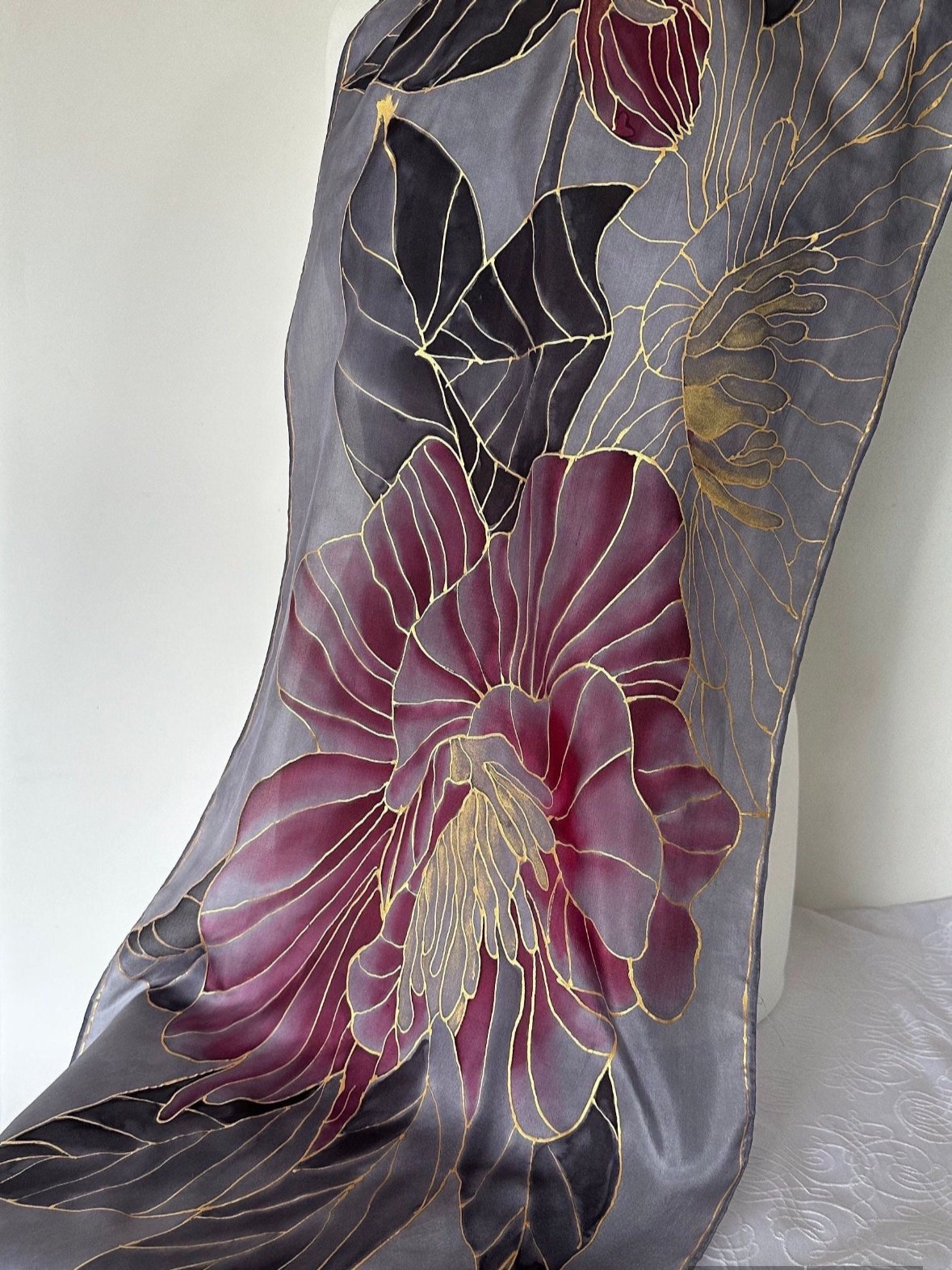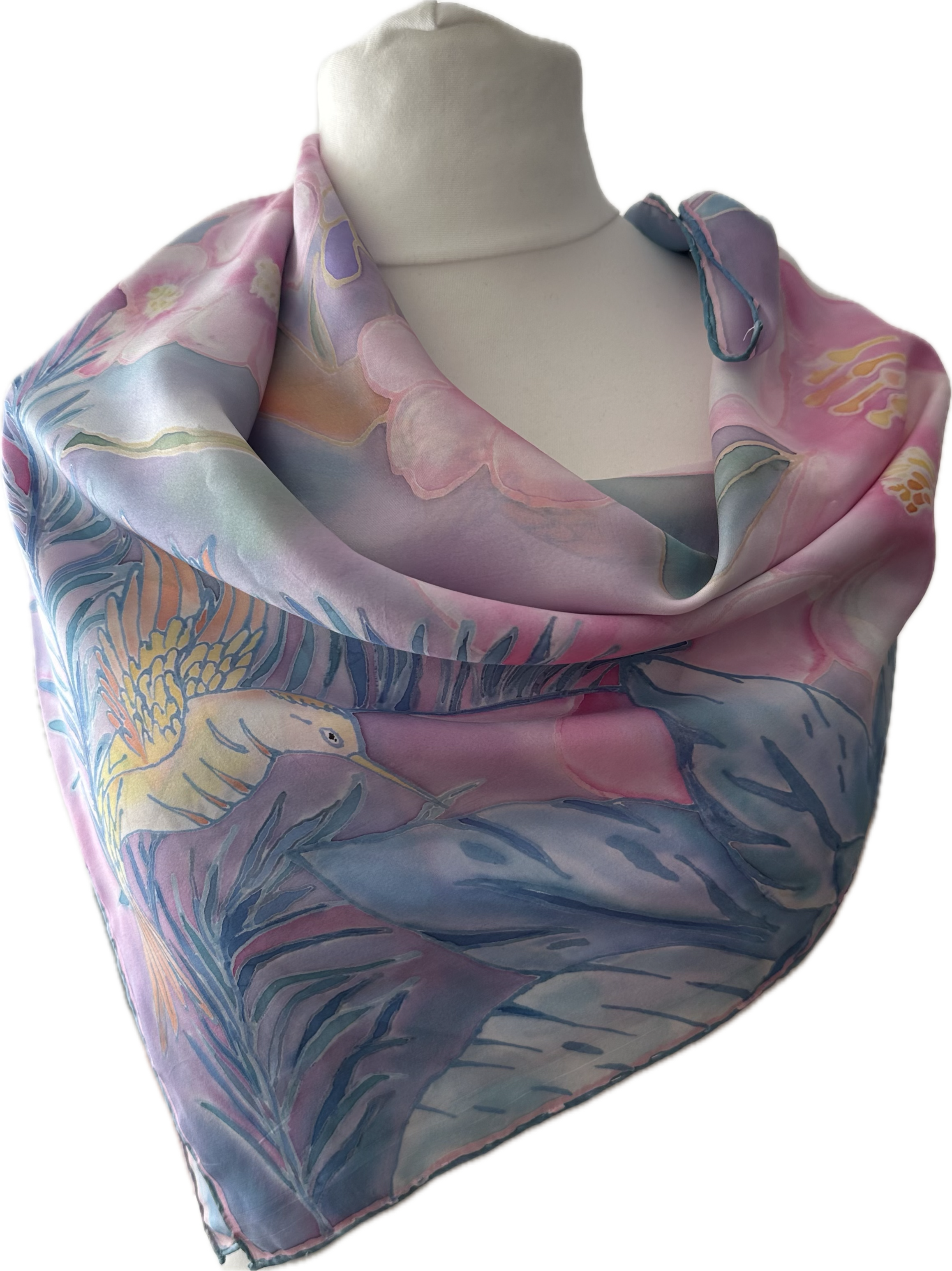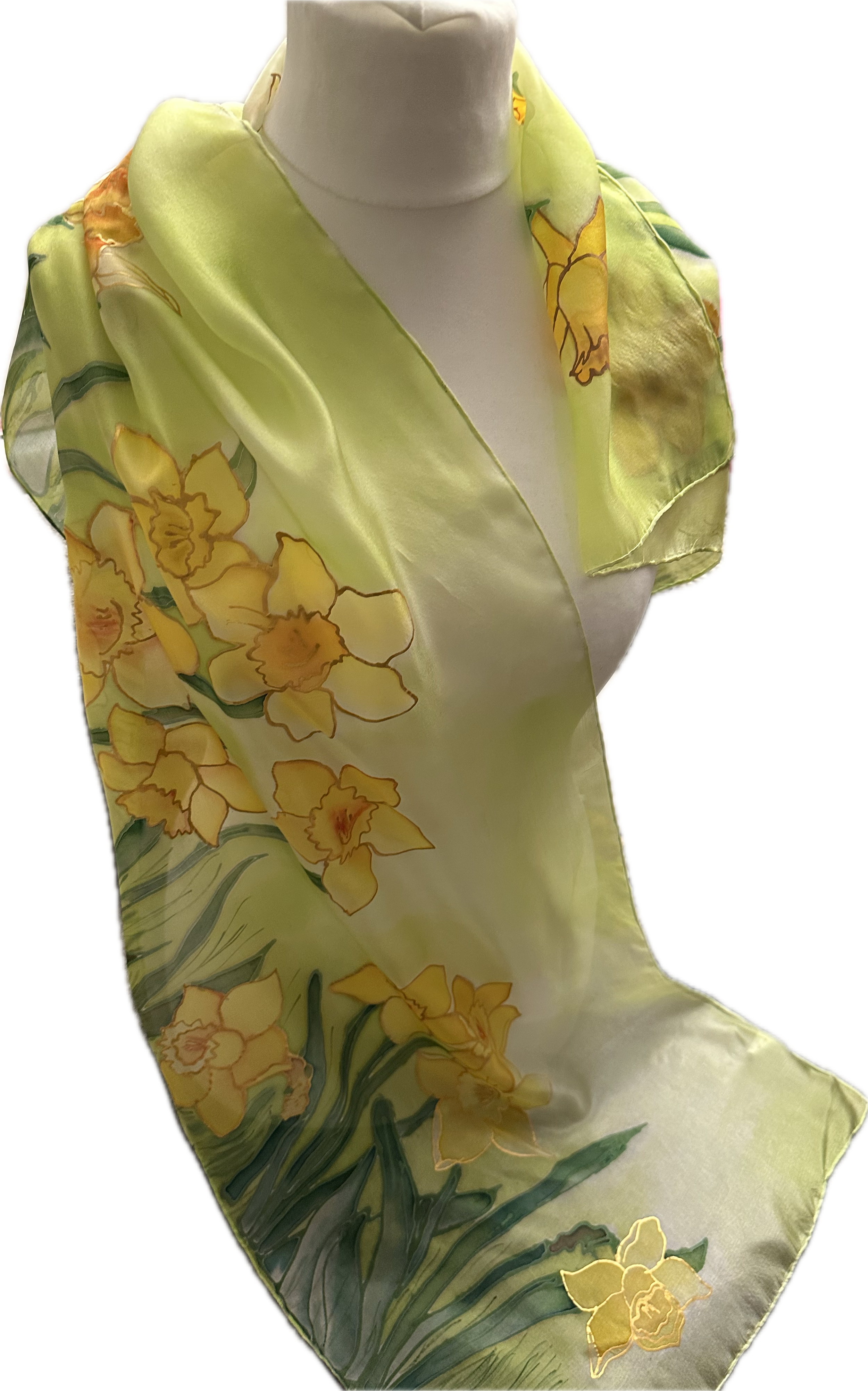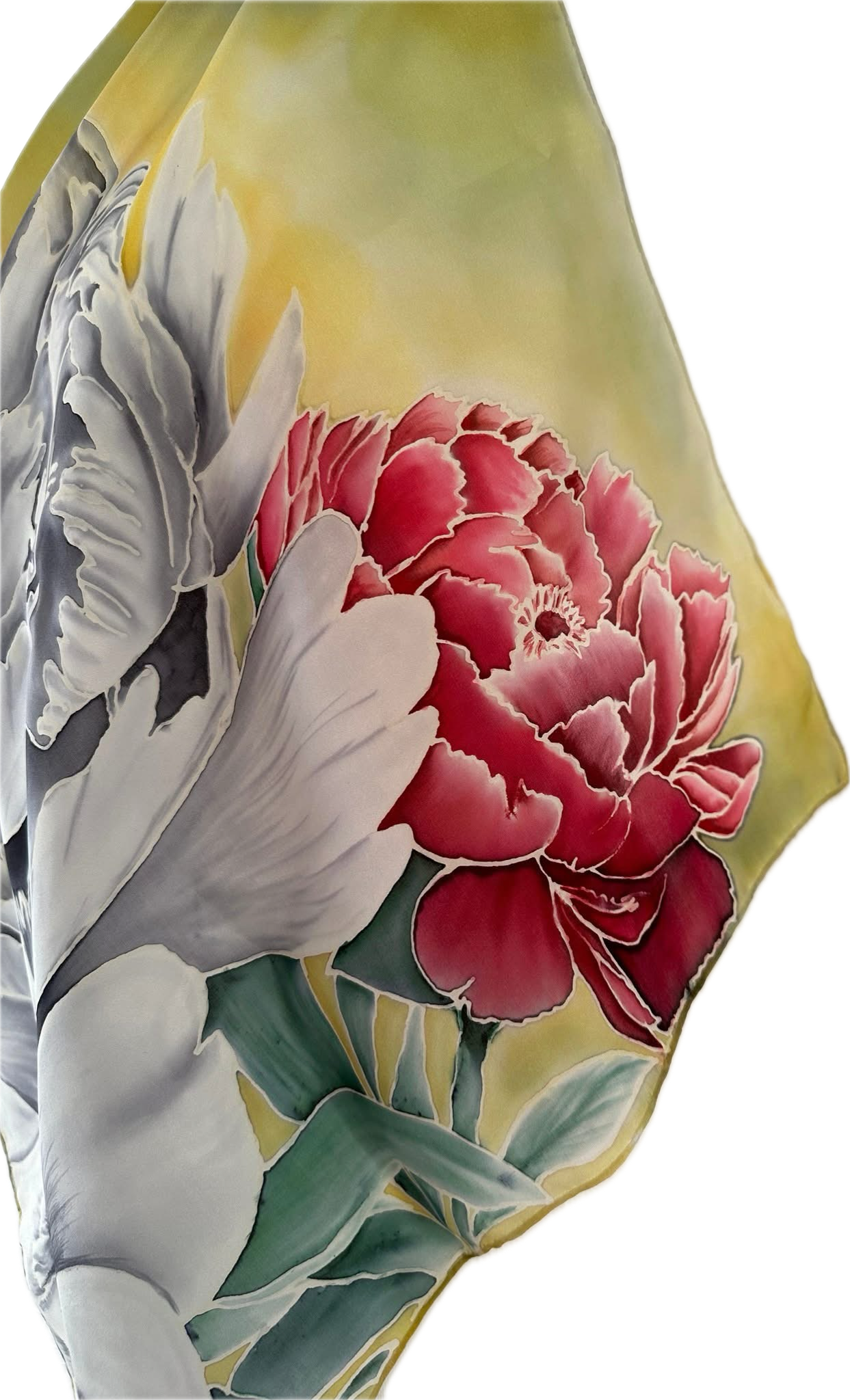 Each silk scarf is carefully hand-painted and made with care, these scarves bring a simple, elegant touch of color and style to any outfit.