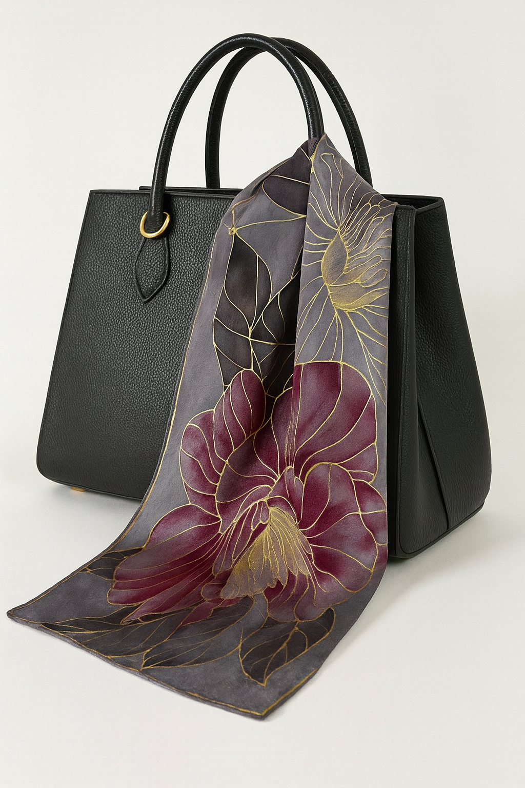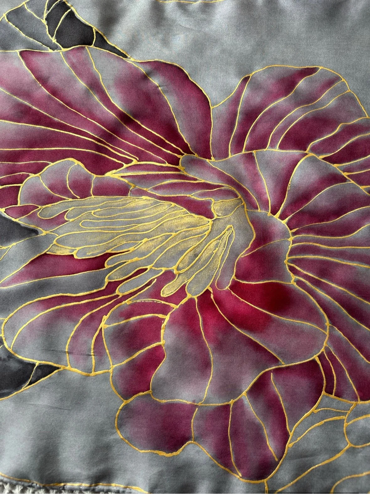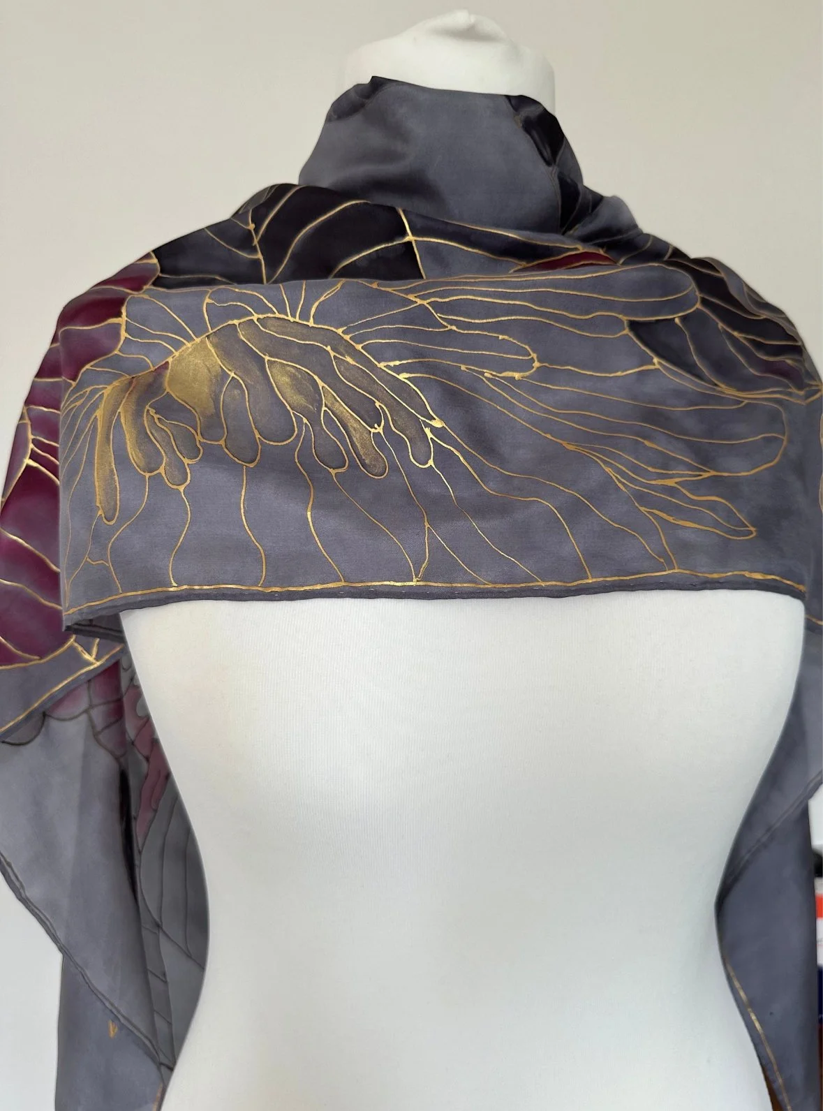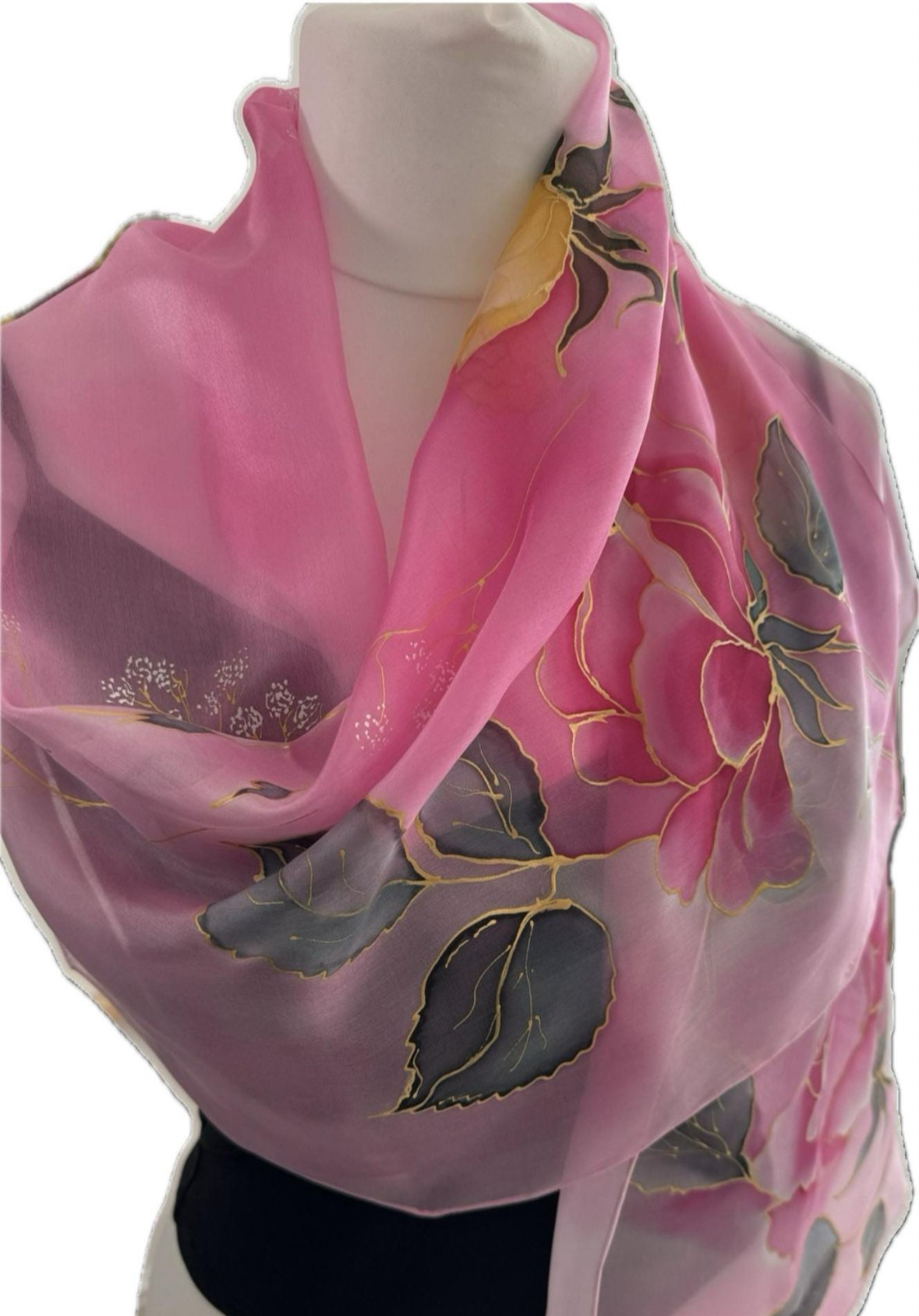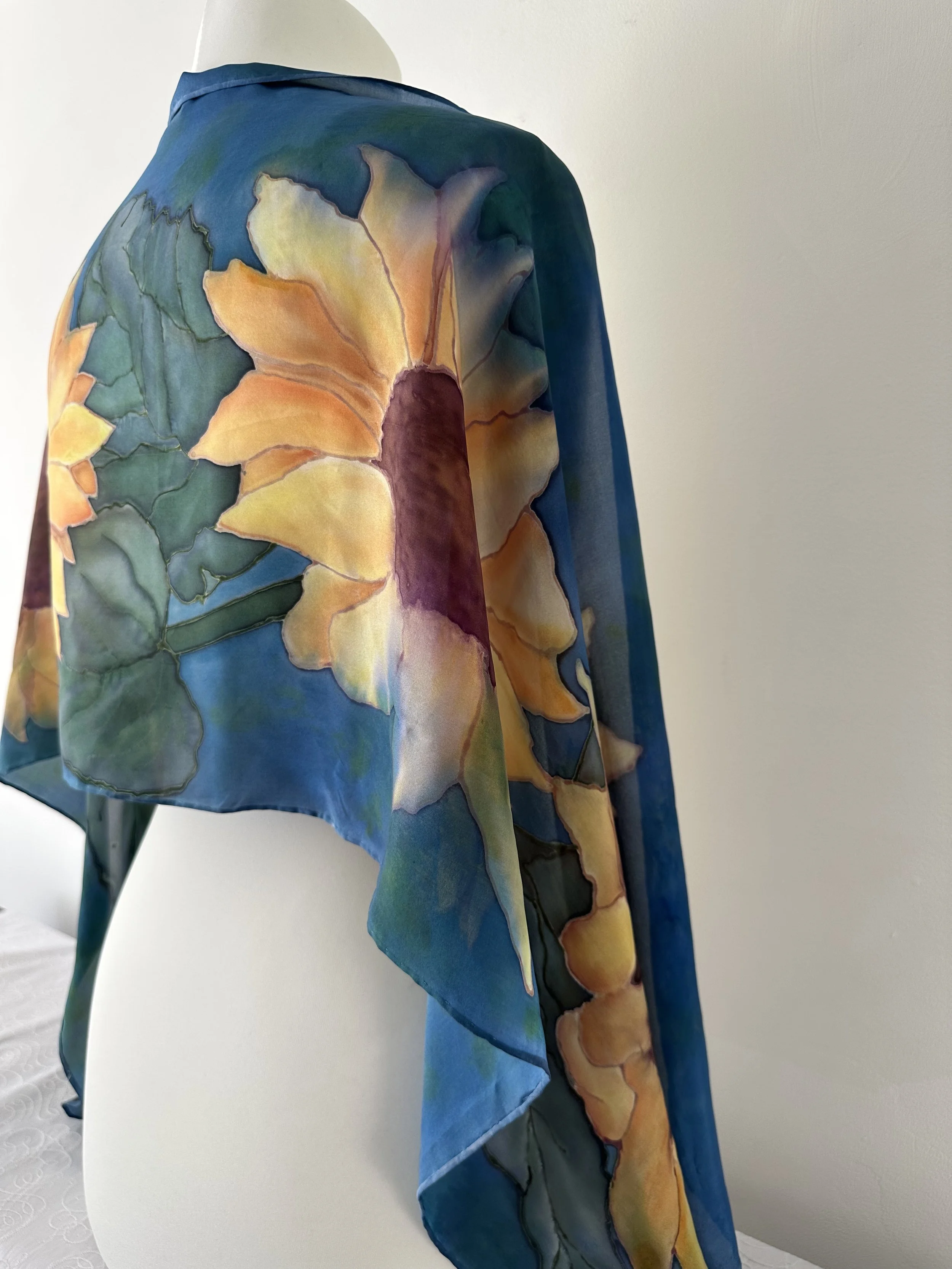Each silk scarf is carefully hand-painted and made with care, these scarves bring a simple, elegant touch of color and style to any outfit.