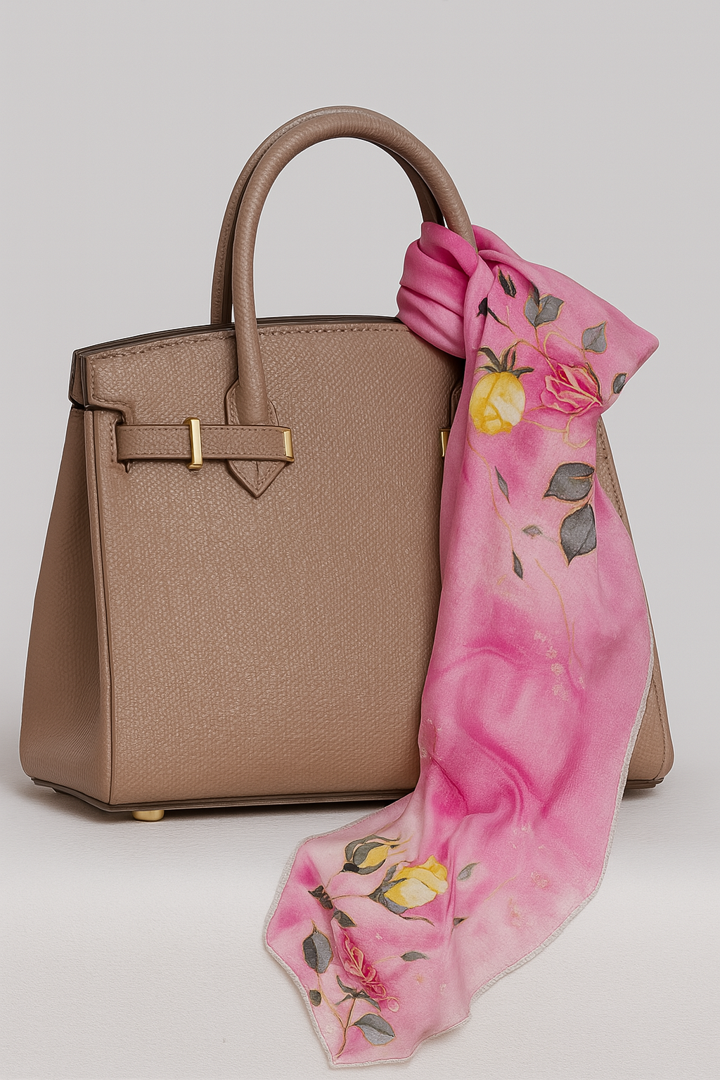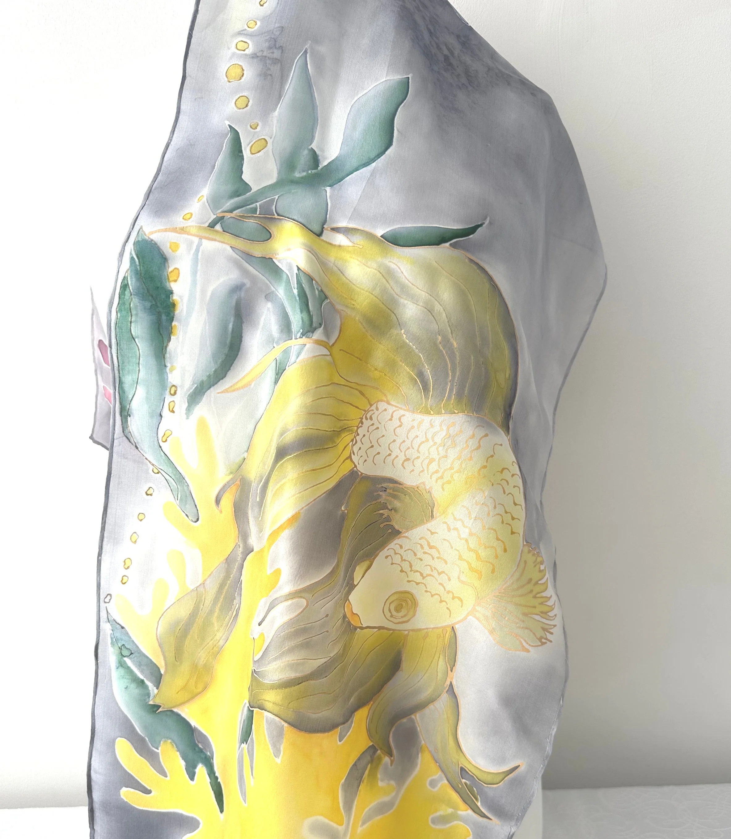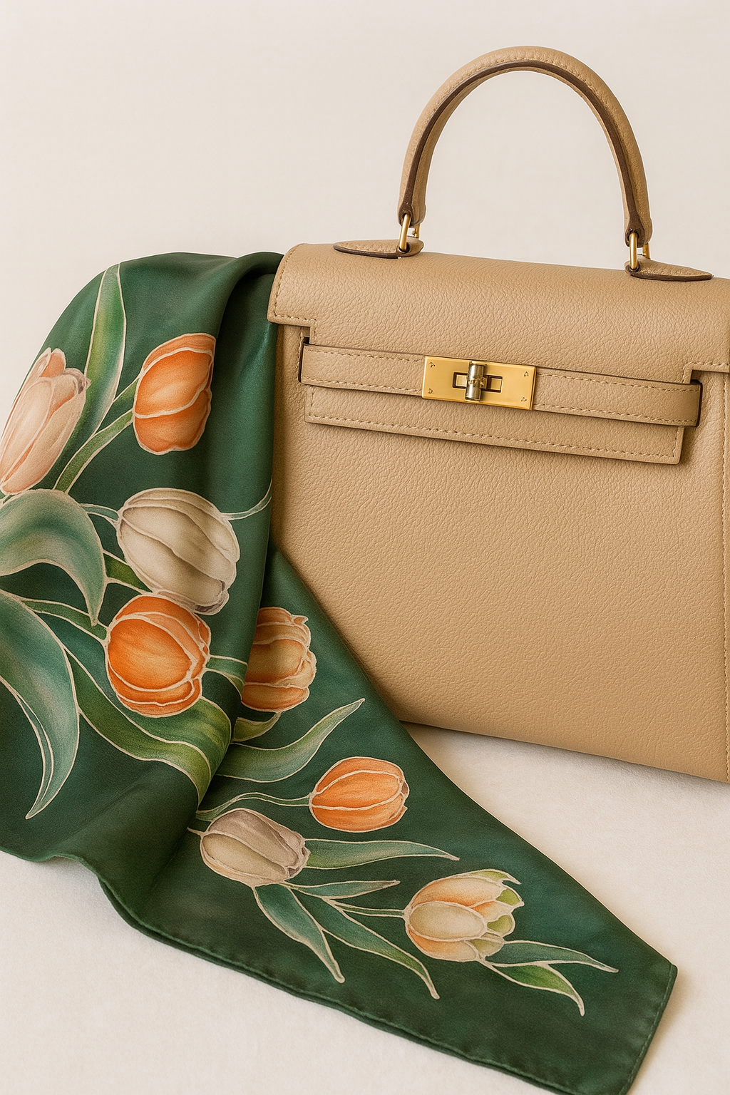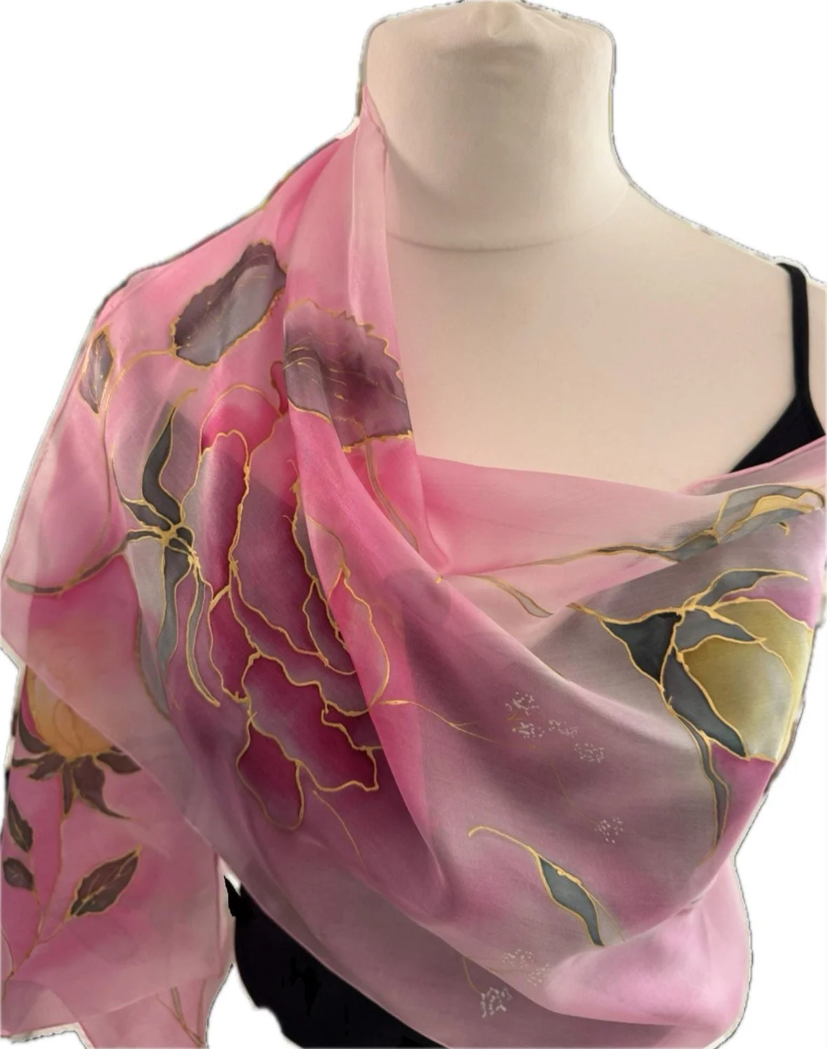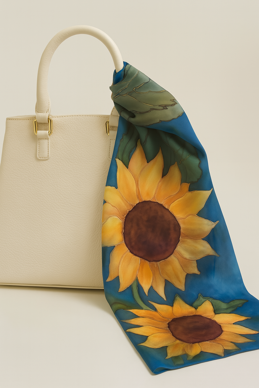 Each silk scarf is carefully hand-painted and made with care, these scarves bring a simple, elegant touch of color and style to any outfit.